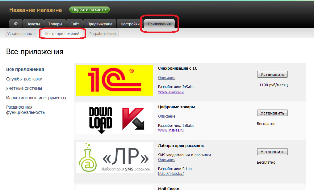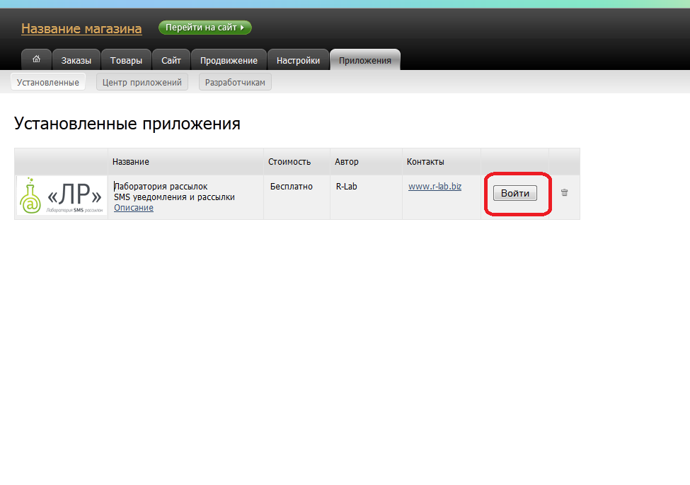 В панели администратора Вашего магазина перейдите в центр разработки приложений.